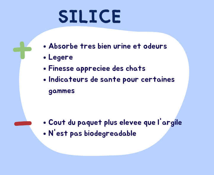 Voici maintenant les points positifs et négatifs des matières de litière.