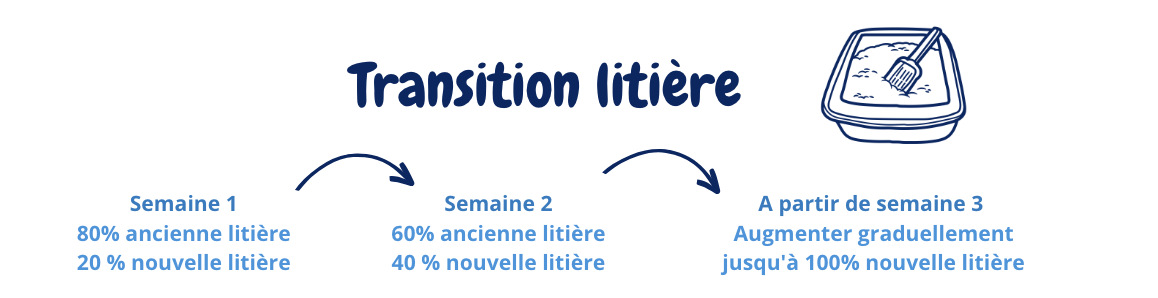 En cas de troubles du comportement, n'hésitez pas à retourner en arrière en augmentant la proportion d'ancienne litière.