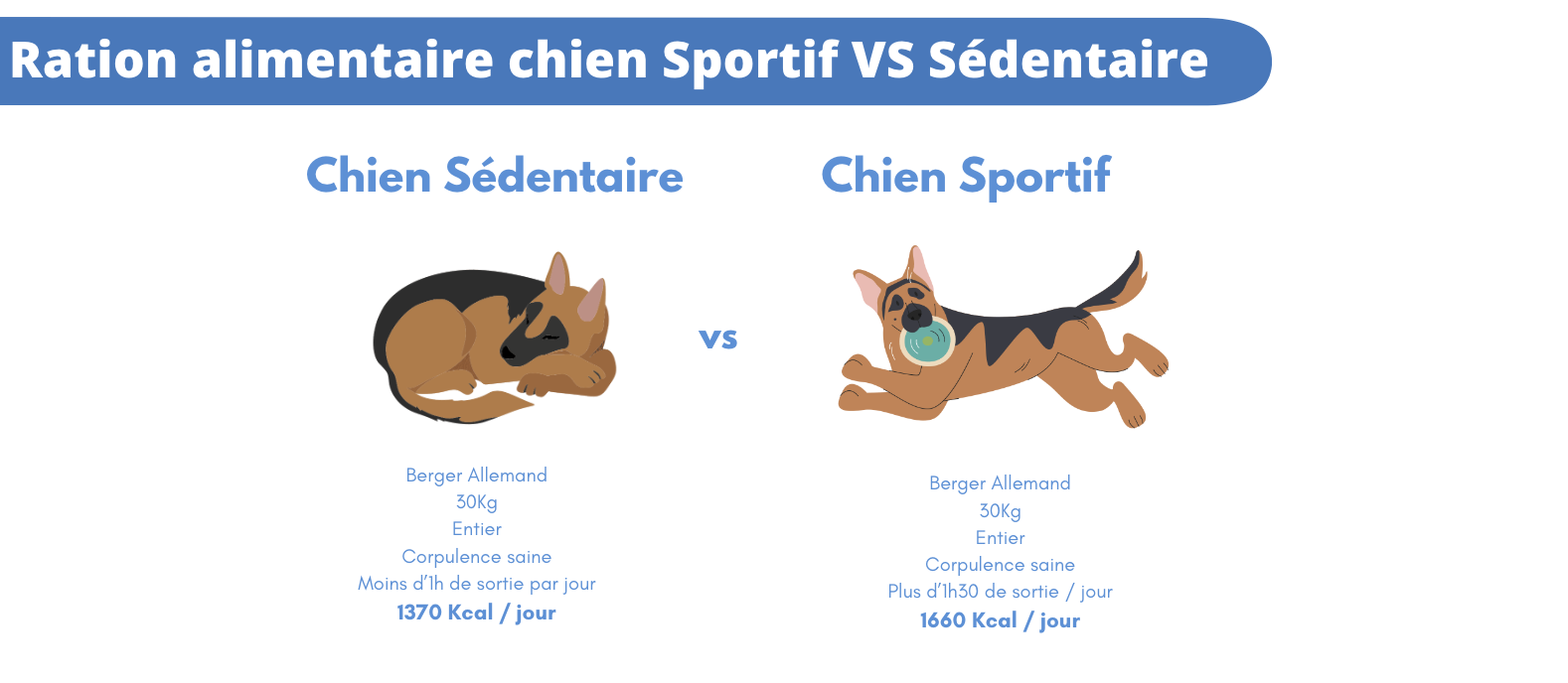 Un chien qui sort en promenade tous les jours, court et joue avec ses congénères ou trottine à vos côtés durant votre footing hebdomadaire n'est pas un chien sportif, ce type d'activité est normal et n'a pas besoin d'une alimentation hypercalorique.
