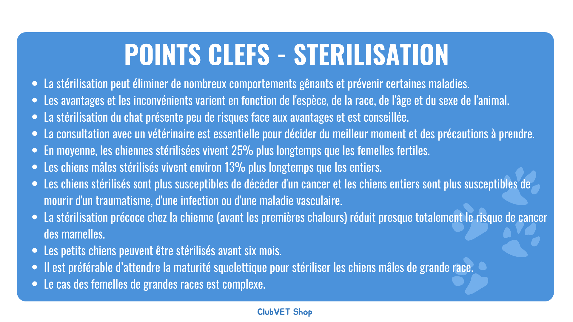 - Chez les chiens, chaque cas doit être évalué individuellement, en tenant compte des spécificités de la race, de l'âge et des conditions médicales préexistantes. La décision finale doit être prise en consultation avec un vétérinaire pour assurer la meilleure santé possible de l'animal.