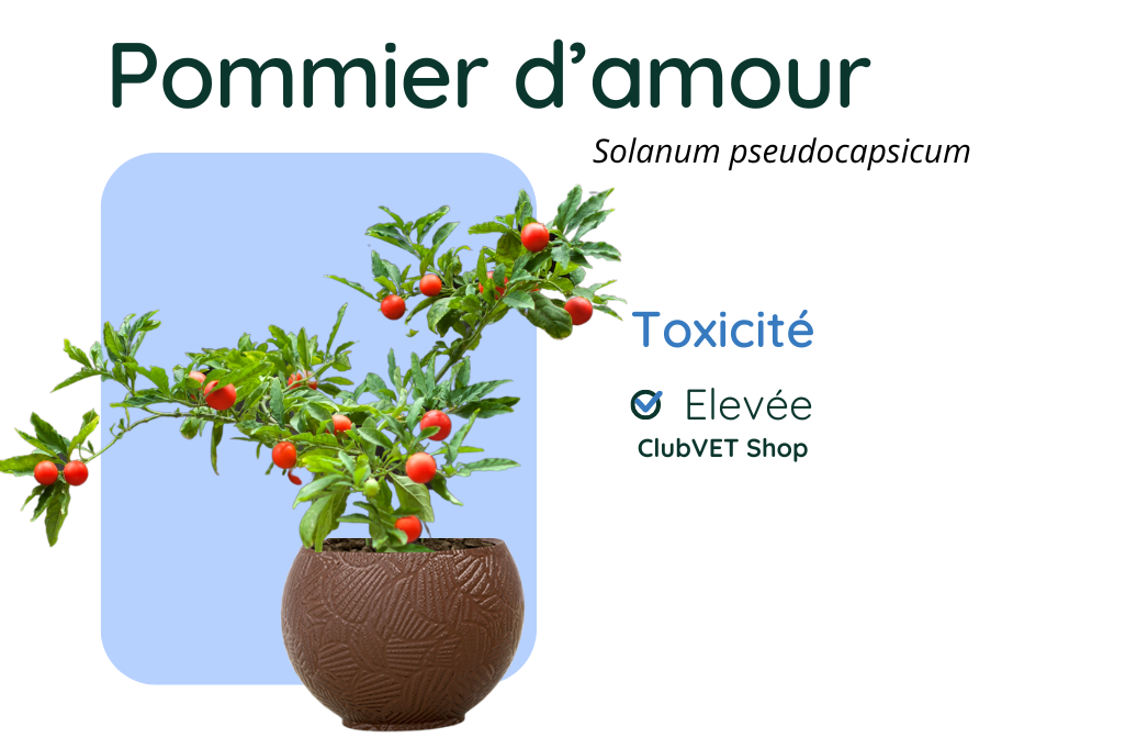 Le pommier d’amour, bien qu'ayant un nom et une apparence adorables, est toxique pour les chats et les chiens, en particulier ses baies.Bien que rarement mortelle, une intoxication massive nécessite une consultation vétérinaire immédiate pour un traitement adapté.