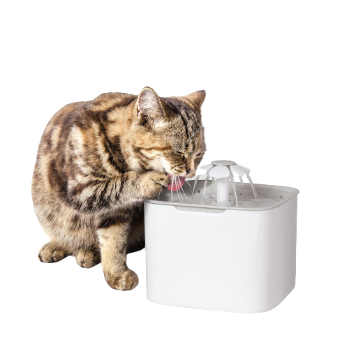 • proposer une fontaine à eau : le mouvement de l'eau attire les chats, elle permet aussi de filtrer l'eau et de la garder fraîche et propre (nettoyez la fontaine en respectant la notice d'utilisation),